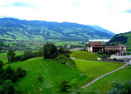 當(dāng)時(shí)我就一直在心里想:究竟有什么面貌特色使她那么迷人呢?汽車離開漢諾威之后,一直穿行于丘陵叢林之間,沿途森林蓊郁蔥蘢,間或可見一幢幢玲瓏剔透的尖頂農(nóng)舍,掩映在綠樹青山之間,既幽雅,又別致,恍若走進(jìn)了一幅富于異國情調(diào)的風(fēng)景畫里。