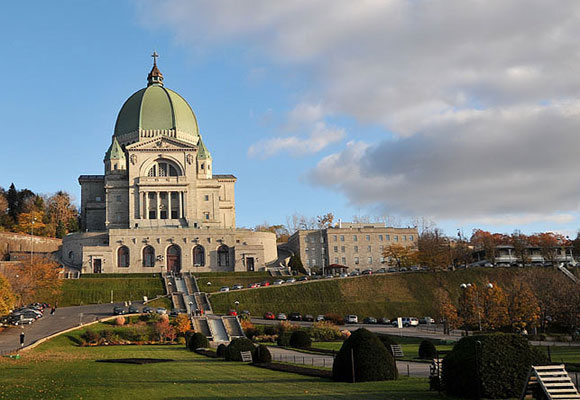 看來(lái)我來(lái)蒙特利爾旅游很是恰當(dāng)呀。這是一座浪漫甚至奢華的城市,皇家山頂是一覽蒙特利爾全城的最佳去處,圣勞倫斯河緩緩的流淌,哥特式的尖頂在陽(yáng)光的照耀下熠熠生輝。那種略帶陳舊的感覺(jué),不由讓人生出一種親切感。這里最明顯的文化特色主要體現(xiàn)在這里的教堂上。圣約瑟夫大禮拜堂都是按照