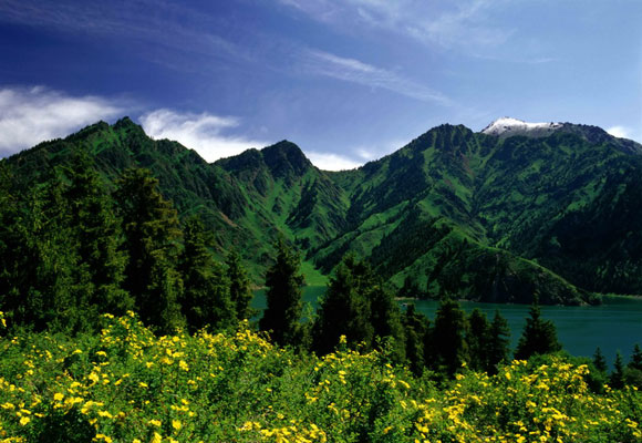 國(guó)旅開(kāi)發(fā)這個(gè)天山天池旅游團(tuán)的時(shí)候,我就和朋友相約一起去,去感受毛澤東主席沒(méi)有感受到的美景。當(dāng)我們一大群人來(lái)到天山天池的時(shí)候,沒(méi)有一個(gè)人跳下去進(jìn)行沐浴,天池里面的水真是清澈,清澈的讓你不忍心讓自己污濁的身體去玷污她,它就那樣靜靜地躺在天山的懷抱中,是那樣的安靜,像是沉睡一樣,陽(yáng)光散在池水上面,讓你越發(fā)地感受到它的嬌媚。