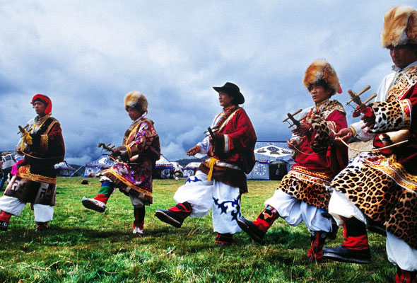 藏歷新年是藏族最隆重、熱烈的傳統(tǒng)佳節(jié)。因?yàn)槿裥叛龇鸾?,?jié)日活動(dòng)洋溢著濃厚的宗教氣氛,是一個(gè)娛神和娛人、慶祝和祈禱兼具的民族節(jié)日。
