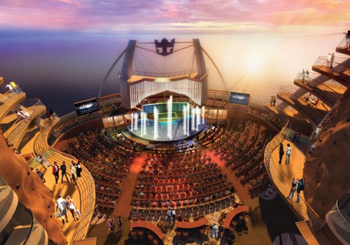 皇家加勒比公司郵輪上的保留項(xiàng)目,海洋綠洲號郵輪上的店面更大,酒單也更豐富。酒足飯飽后,游客還可以逛逛道路兩旁的小店。整個(gè)中央公園最吸引人的焦點(diǎn)當(dāng)屬全球獨(dú)一無二的海上旋轉(zhuǎn)木馬。它的尺寸與游樂園里的完全相同,是用白楊木手工打造、耗時(shí)6個(gè)月手繪完成的,相信無論孩子還是成年人都將對其終身難忘。如果說酒吧、商店和旋轉(zhuǎn)木馬只是海洋綠洲號郵輪休閑娛樂大餐中的“開胃菜”,那么“主菜” 應(yīng)該是中央公園內(nèi)的“水劇場”。劇場造型接近于古