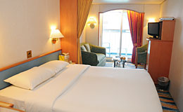 樓層:8、9、10樓 容納人數:3位成人/2位成人及2位兒童 設施:1張雙人床及1張雙人沙發(fā)床 |