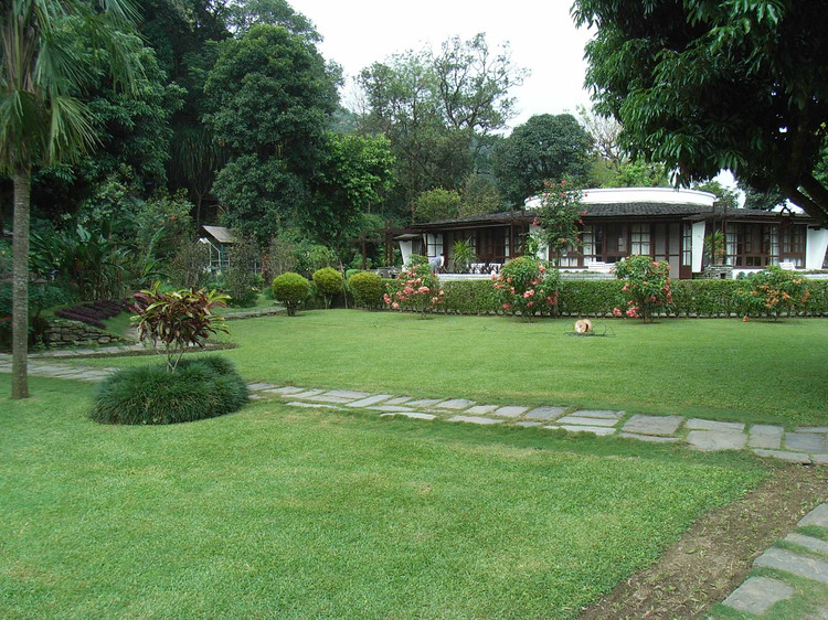 整個(gè)小島就是一座熱帶植物的花園,紅艷熱剌的花朵開遍每個(gè)角落。鵝卵石鋪成的小路通向每個(gè)安靜的房間,樹枝上搖晃著鐵皮雕花的燈罩,古樸美麗。房間都是一個(gè)有青石屋頂?shù)牡桶椒?,門前有小花園,白色的涼椅,可以在室外喝下午茶。房間更是可愛,在窗邊有長長的臥榻,依在窗邊,可以看湖光山色。如果天氣足夠好,還可以看到云霧繚繞間積雪的山頂。