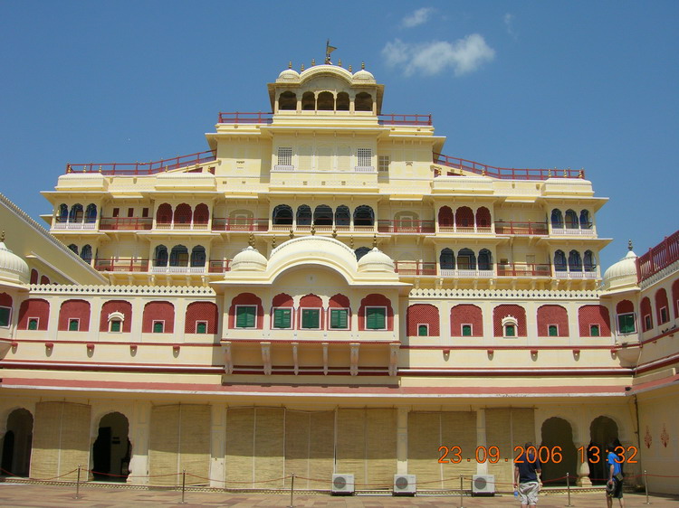 印度保存得最為完好的古跡之一。王宮是拉賈斯坦城邦臣服于莫臥兒帝國后,于1728年興建的宮殿,現在的齋浦爾國王還生活在皇宮內?;蕦m由多個宮殿組成,單是城門就有8個之多,建筑奢華,幾乎占了舊市街四分之一面積。