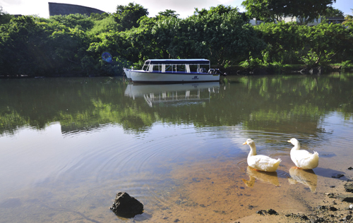 邊上的集市雖然不大但值得去逛一逛。那里有各式各樣的東西,服裝、家庭用品、工藝品、土特產(chǎn)、水果、蔬菜……應(yīng)有盡有。商販的吆喝、鳥兒婉轉(zhuǎn)的歌喉還有貓狗們的叫聲混和在一起,奇特而又充滿生機。集市里有很多當(dāng)?shù)厥止に嚻罚W著光澤的貝雕、圖案靚麗的草編拎包、樸拙的