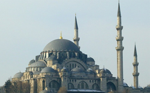 藍(lán)色清真寺:藍(lán)色清真寺的真名是素檀何密清真寺,這座清真寺是因?yàn)樗拇纱u上的光彩而得名的。藍(lán)色清真寺唯一伊斯坦布爾的市中心,周?chē)跏欠比A,但也更突出了這座寺廟的清幽。在外觀上看來(lái)這座寺廟,或許和其他的寺廟有很大的相似之處,但是,你若仔細(xì)觀察,便會(huì)發(fā)現(xiàn)它比別的清真寺多了一根箭塔。
